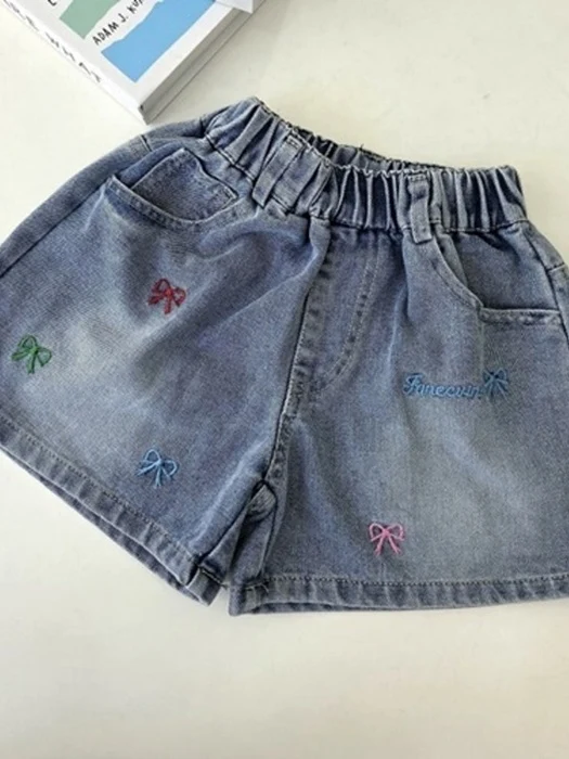 Ribbon Embroidered Short Denim Pants